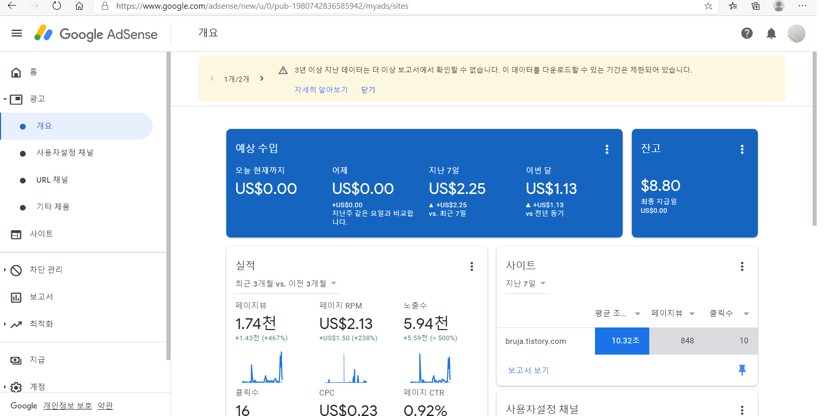 구글 - 애드센스 수익률 인증